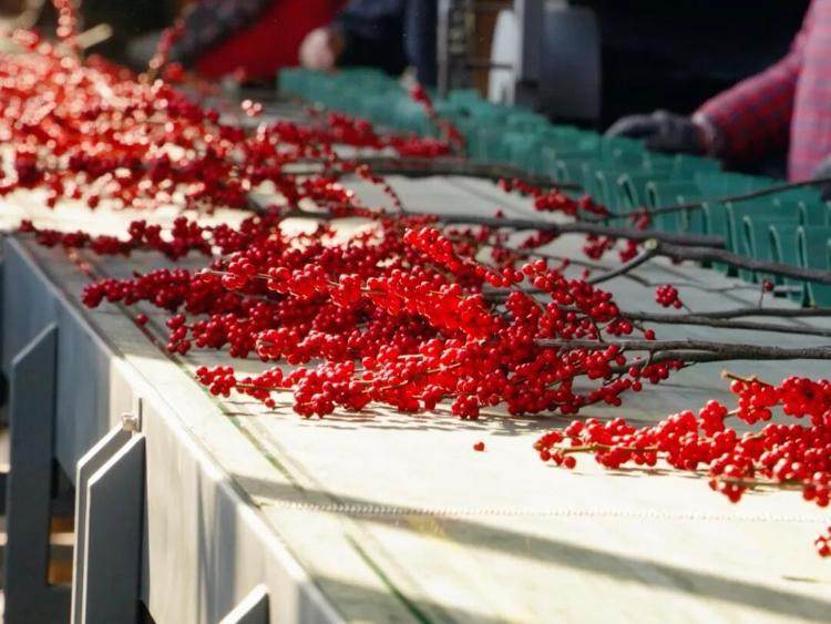 包装纸沙沙作响,一束束精美的北美冬青整装待发,即将奔赴全国乃至世界各地,装点千家万户的冬日。