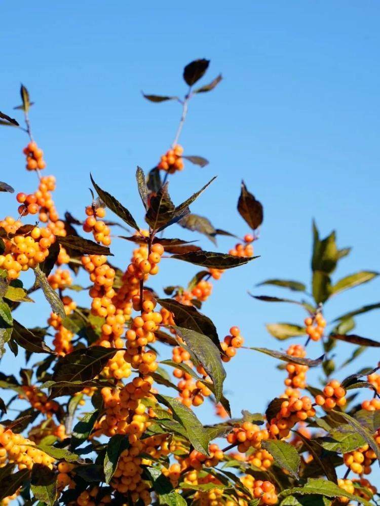 橙色果实带着温柔的暖调,比红色多了份俏皮,不同色彩的果实点缀山间,碰撞出层次丰富的冬日风情。