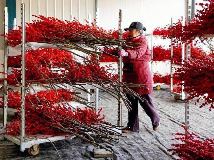 这片火红的产业,也照亮了村民们的生活。村民刘女士擦了擦汗笑着说:“在家门口上班,还能照顾老人孩子,看着这些冬青变红变美,我们心里也高兴!”这抹红,不仅美了冬日,更让桥头镇村民的日子过得红红火火。