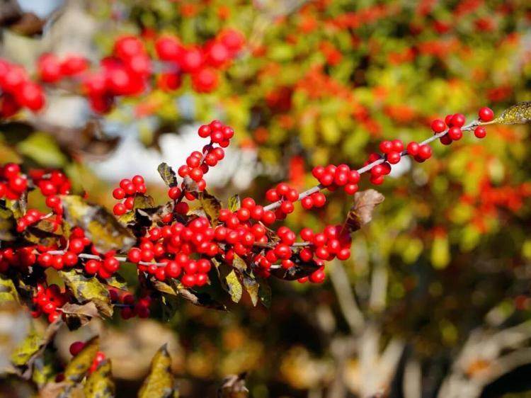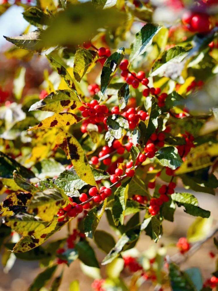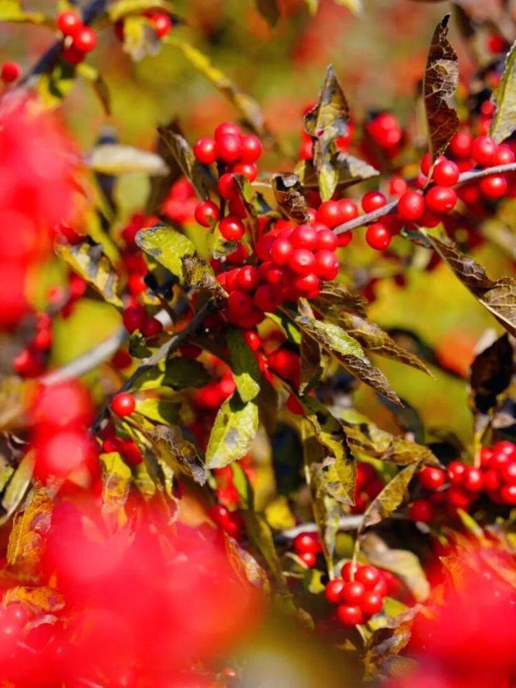 漫山遍野的北美冬青扎根于此,经典的红色果实如一簇簇燃烧的小火把,而新培育的橙色品种则像洒落的暖阳。