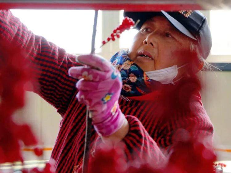 “每一支都要精挑细选,可不能碰掉一颗果子。”一位大姐边说边轻巧地修剪着枝叶,动作轻柔得像在对待珍宝。