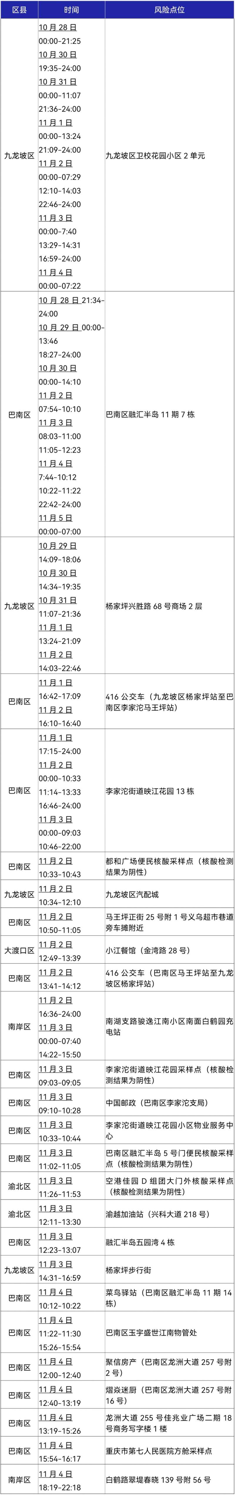 2022年11月5日,巴南区新增1例确诊病例和3例无症状感染者。4人在渝期间主要活动轨迹风险点位和风险时间公布如下。