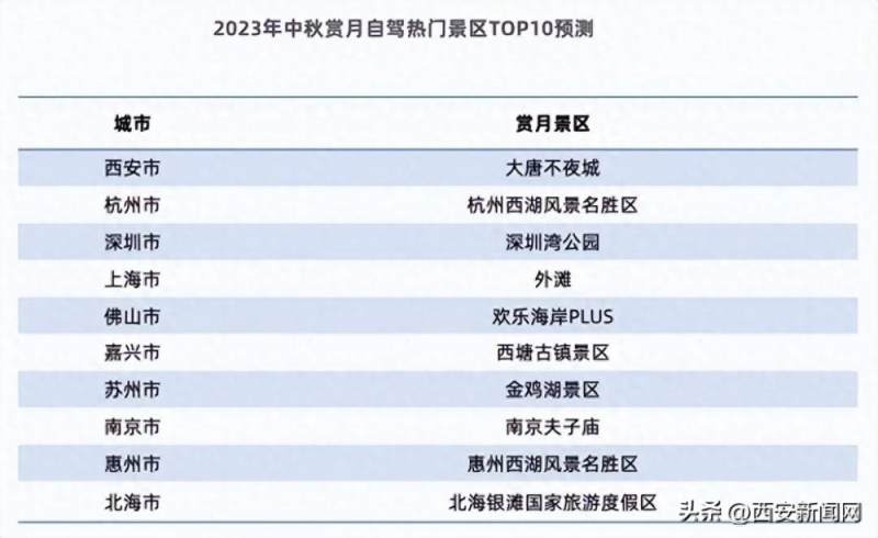 近日,高德地图发布《2023年中秋国庆假期出行预测报告》(以下简称“报告”),为节日出行、出游提供参考。根据报告,西安大唐不夜城上榜全国自驾热门赏月风景区TOP10,且热度第一。
