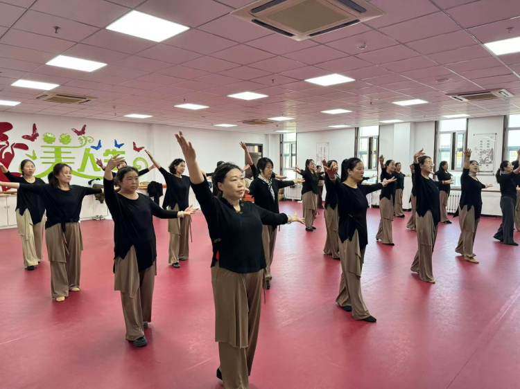 隔壁的舞蹈教室里,伴随着轻快的音乐,学员们身着统一舞蹈服,在老师的带领下舒展身姿、变换舞步。“我今年54岁了,在这里报了舞蹈和太极两门课。以前在家就是围着灶台转,现在每天来上课,和同学们一起跳舞,锻炼身体,日子充实得很。”学员张清兰脸上洋溢着幸福的笑容。