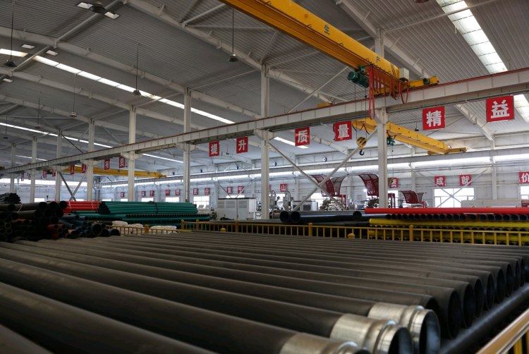 在陕西众德科创科技有限责任公司生产车间内,机器轰鸣,一期建成投产的管道自动生产线上,工人们上料、挤塑、打孔、套丝......现场一派繁忙的生产景象。