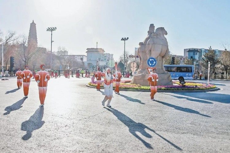 450名火炬手来自各行各业,他们中间有“人民医护工作者”国家荣誉称号获得者路生梅,有“七一勋章”获得者石光银,也有全国“劳动模范”牛玉琴,这些身边鲜活榜样的参与,如同一支支火炬,照亮时代发展的新征程。火炬传递沿途上演的陕北大秧歌、绥米唢呐、太极拳展演、武术表演等,荟萃了榆林丰富的非遗代表性项目和群众性体育活动,让火炬传递超越了体育赛事的范畴,成为展示城市人文底蕴和全民健身成果的平台。