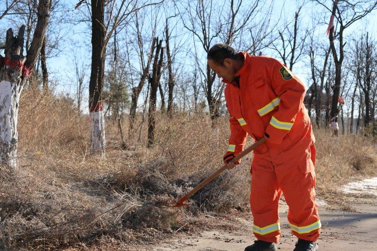 1月19日上午9点,神木市水磨河林场大庄林区内,一抹亮眼的橘红格外醒目——护林员訾兰虎身着巡护服,踏上熟悉的巡山之路。他手握铁锹,走走停停,细心清理着路边和树干上的杂草与枯枝,仔细排查火情隐患。“我们每天都要巡山,冬季天干物燥,我们的首要任务就是防火,每天能走十几二十公里的路。”訾兰虎说道。