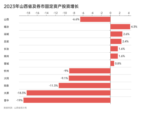实事求是地说,固定资产投资下滑,而且不是增速下滑,是绝对值下滑,这是影响山西2023年GDP增幅没有达到全国平均水平的最直接原因。山西省全年固投下滑率达6.6%。全省仅有一个地市小幅增长,以太原、晋中为代表的5个城市大幅下滑。