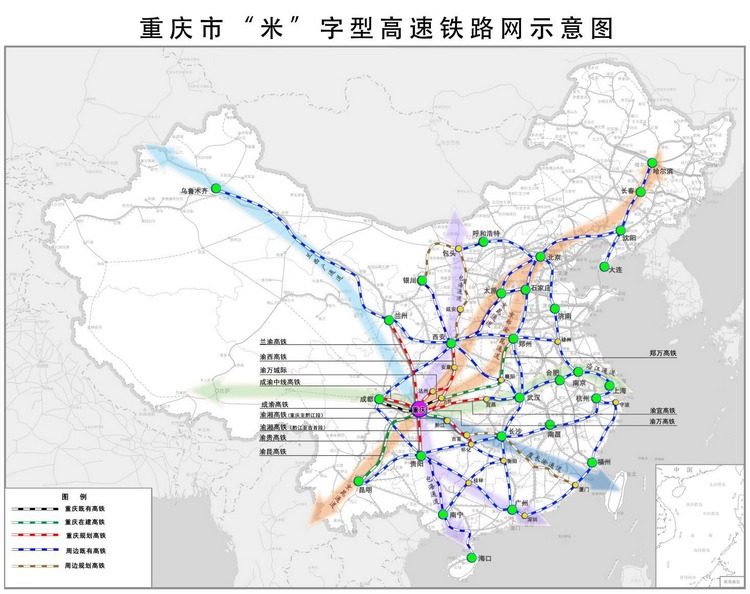 上游新闻记者注意到,在规划的“米”字型高铁网中,重庆已建成渝万城际、成渝高铁和郑渝高铁。