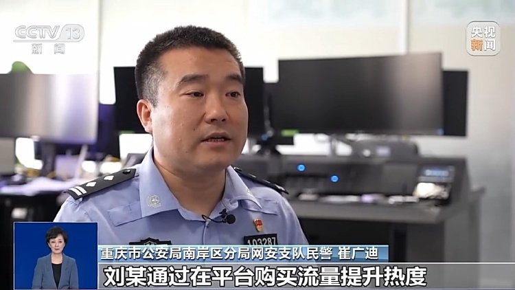 重庆市公安局南岸区分局网安支队民警 崔广迪:我们调查发现,刘某通过在平台购买流量提升热度,导致谭某被网友攻击辱骂,网络空间秩序被严重地破坏。在调查过程中,刘某也认识到了自己行为的违法性,并且认了错。我们将根据进一步的调查结果,依法作出处理。