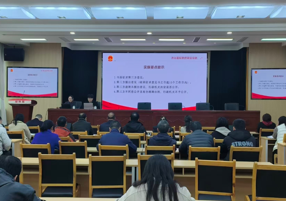 “此前辖区曾出现因村务信息公开答复不规范引发的行政复议案件,暴露出基层工作的程序疏漏。”该司法所负责人介绍,近两年全镇涉行政案件中,近三成与信息公开相关,既耗费大量行政资源、增加行政成本,也易衍生历史遗留矛盾、损害政府公信力。为此,培训特别将信息公开专题作为“法治基层政府建设导航”系列法治培训讲座开篇,旨在推动基层工作人员树牢“合法合规、合情合理、合程序”的工作思维,带着温度开展好基层群众法律服务工作。