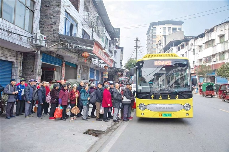 赶集的老百姓有序排队上车。图源 重庆法治报