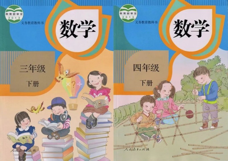 ▲ 人教版数学教材小学三年级下册和四年级下册封面。 (资料图/图)