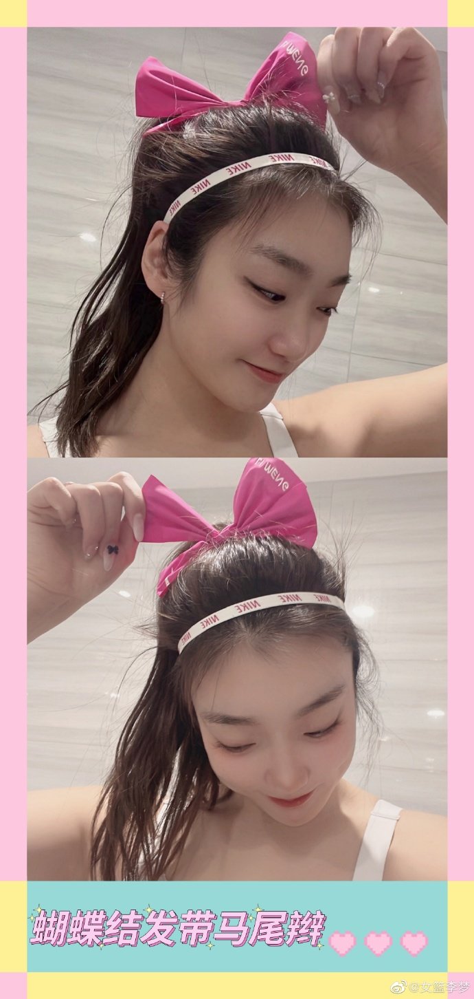 场下的李梦有点甜,卧蚕眉笑起来像弯月般柔和,饰品也非常少女,粉色的头绳和指甲油每场比赛都能看见。