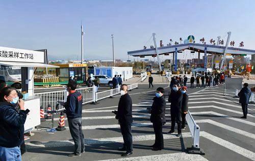 11月5日,出城人员排着长队等待核酸检测。内蒙古日报 图