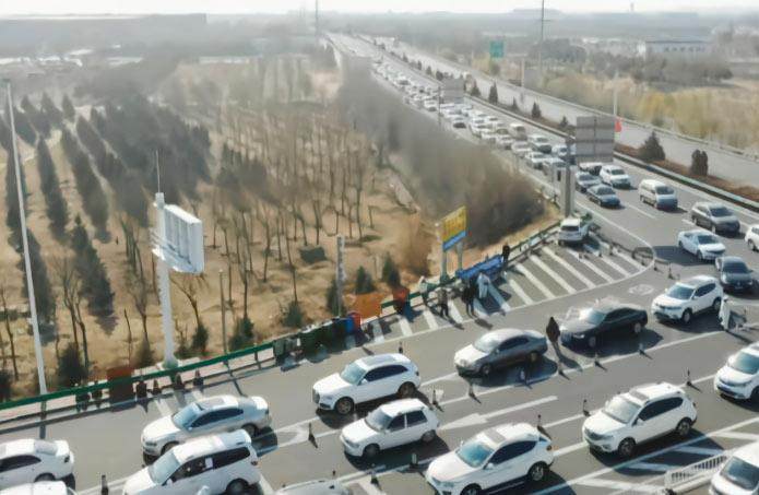 11月5日,呼和浩特东出口等待出城的车辆。内蒙古日报 图