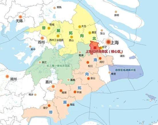 早在2021年2月,国务院批复《虹桥国际开放枢纽建设总体方案》, “大虹桥”由此成为推动长三角一体化发展战略的重大布局之一。数据显示,2022年虹桥国际开放枢纽全域地区生产总值达2.69万亿元,以占长三角不到2%的面积贡献了近10%的经济总量。
