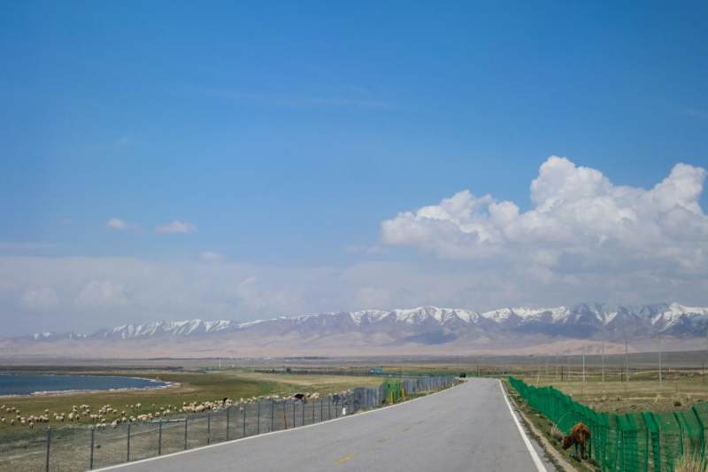 5月16日,青海湖环湖东路附近的一处围栏。新华每日电讯记者张龙摄