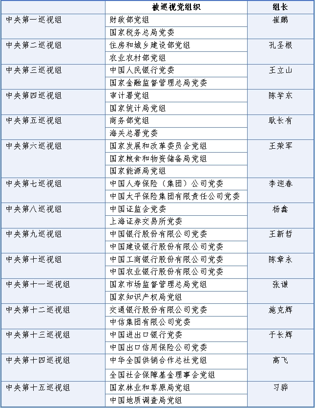 目前,中央巡视组陆续进驻被巡视单位,15位中央巡视组组长全部亮相。