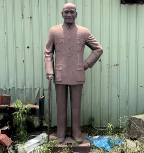 资料图:被遗弃在台湾某处垃圾场的蒋介石铜像。 图片来源:台媒