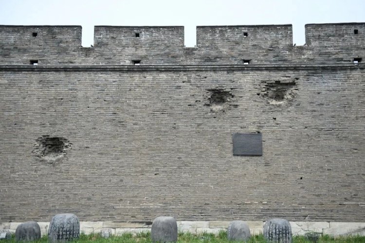 这是2024年7月4日拍摄的宛平城城墙上的弹坑遗迹。新华社记者张晨霖摄