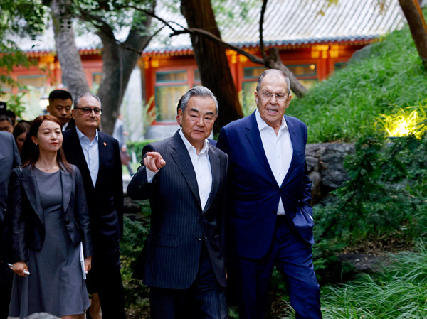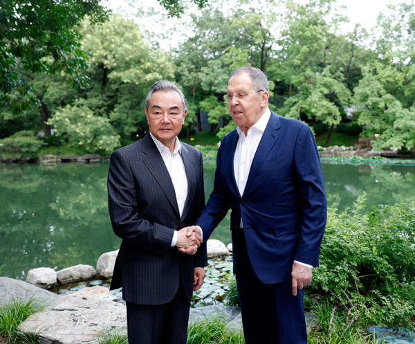 拉夫罗夫表示,俄方愿同中方一道,在两国元首战略引领下,深化各领域合作,推动俄中关系不断取得新成果。俄方将继续全力支持中方担任上合组织轮值主席国,加强在上合组织等框架下沟通协作,推动天津峰会取得圆满成功。
