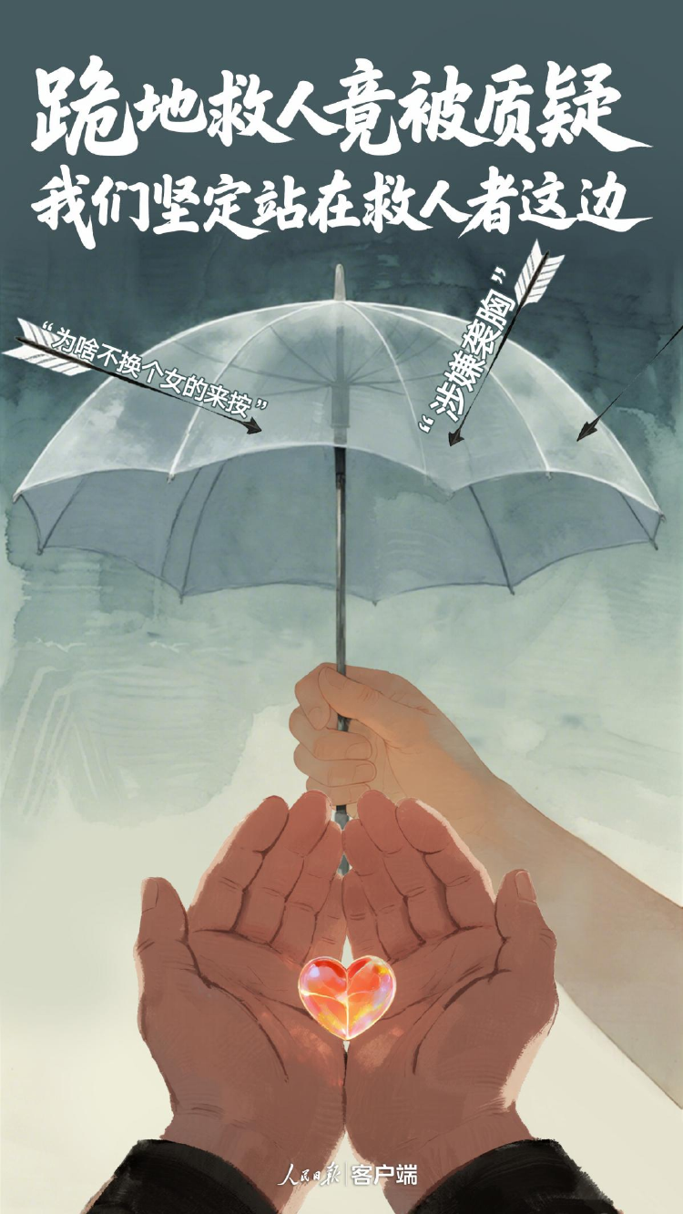 原标题:跪地救人竟被质疑,我们坚定站在救人者这边