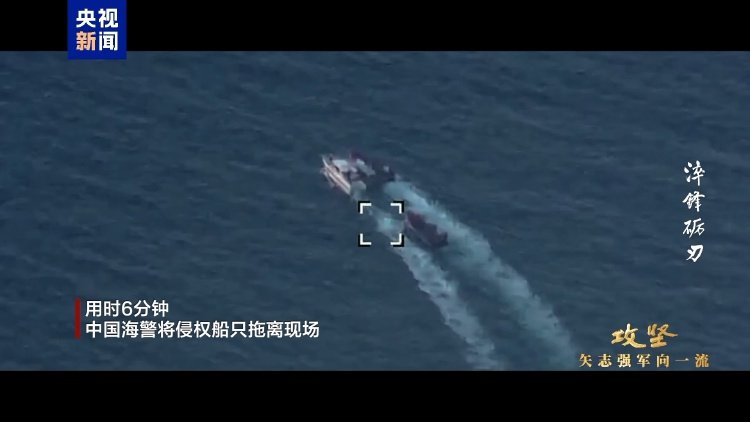 仅用6分钟,成功将侵权船只拖离现场,和平需要争取,和平需要守护,王骞说,必须守住这片海!