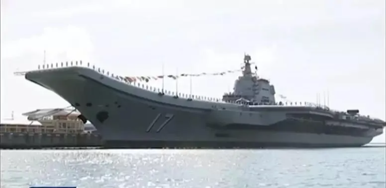 2019年12月17日,海军山东舰航母在海南三亚某军港正式入列。(图源:央视截图)