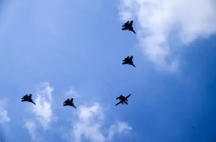 歼-35、歼-15T、歼-15DT和歼-15DH组成九三阅兵舰载机梯队。(图源:新华社)
