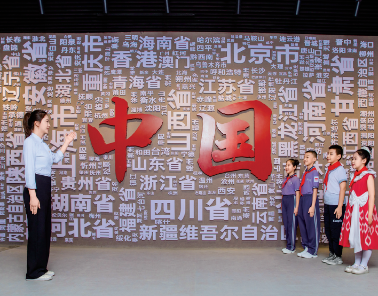 西部计划志愿者在和田地区铸牢中华民族共同体意识宣传教育馆为孩子们宣讲 图源:“共青团中央”微信公众号