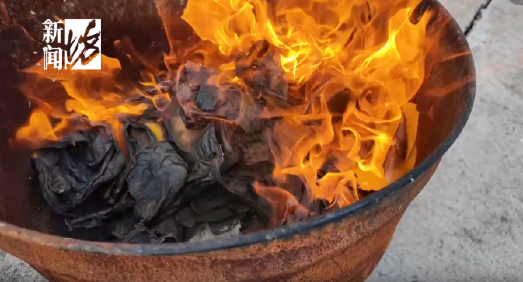 小区公共视频画面显示,当天张女士在楼栋门口烧纸祭祖后,顺手就把灰烬倒进了路边的垃圾桶。