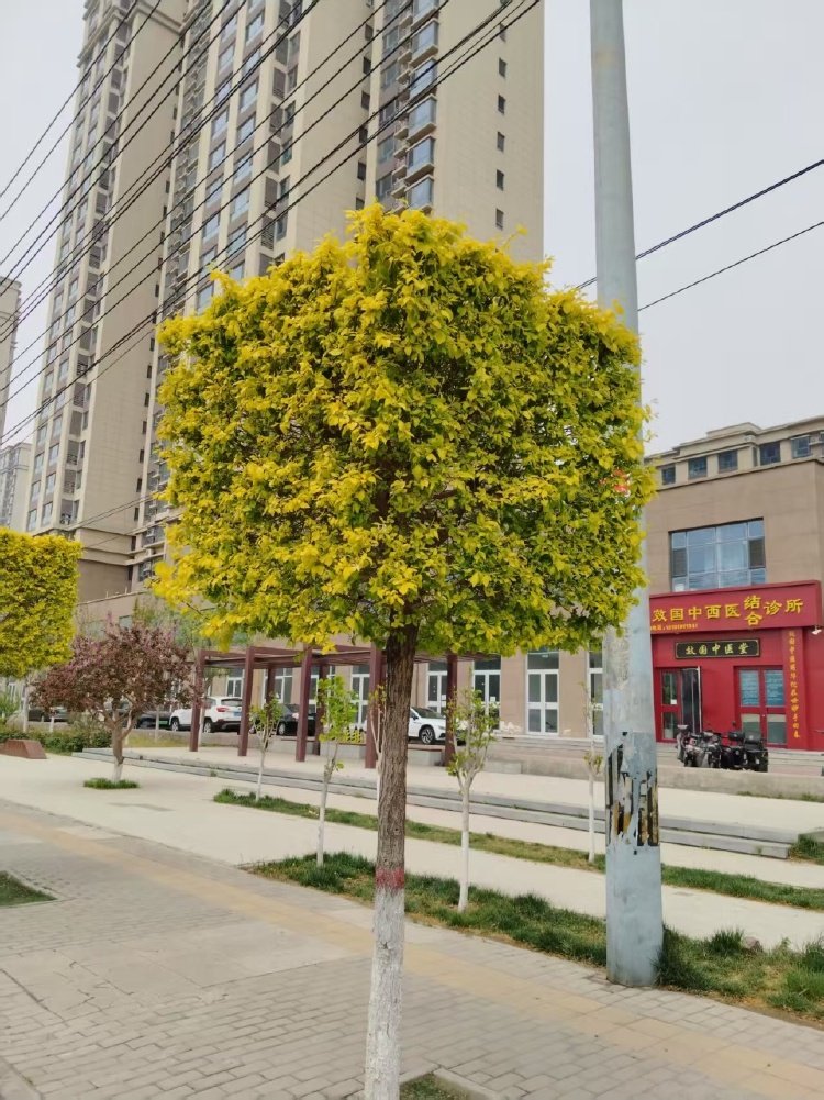 记者从一专业人士处了解到,这些景观树为金叶榆。