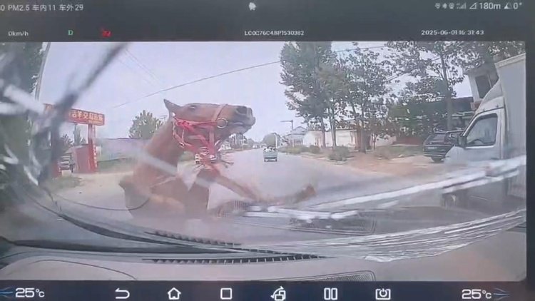 红星新闻消息,6月1日,有网友发布短视频称,当天16时30分许,其开车行驶在山东省新泰市的241省道上,突然左前方冲出来一匹无人看管且受惊的马匹,直接撞上了该网友的车辆。