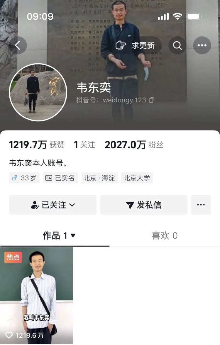 原标题:北大“韦神”粉丝破2000万!“韦东奕严选”也来了?律师:“碰瓷”账号涉嫌侵权