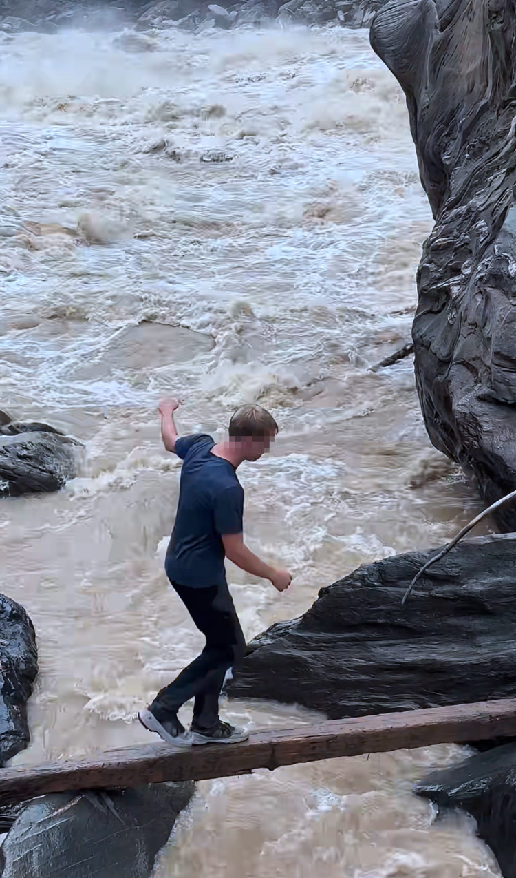继李现带火的虎跳峡“发呆石”因安全隐患关闭后,中虎跳峡未开放区域的“发疯石”,近期成为新晋网红打卡点。有游客爆料,前往此处需签免责协议。另有视频显示,“发疯石”必经仅容一人通过的狭窄独木桥,江水湍急且无任何防护措施。“这个照片是非拍不可吗?”拍照需冒很大风险,引发网友热议。