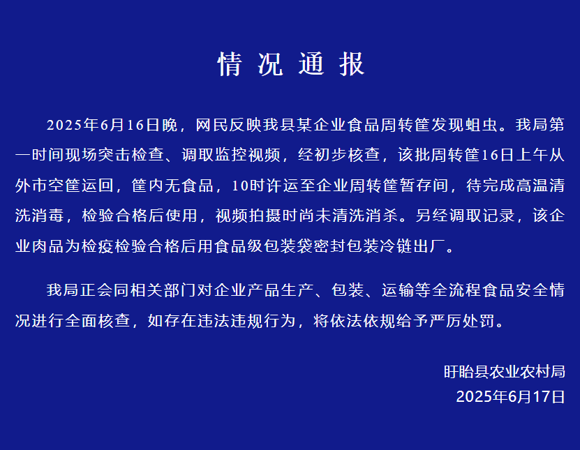 6月17日,盱眙县农业农村局发布情况说明,内容如下: