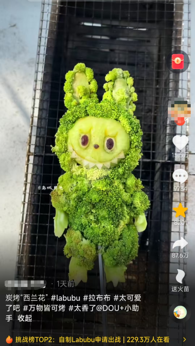 李先生制作的烧烤版拉布布引发15.5万人点赞。视频截图