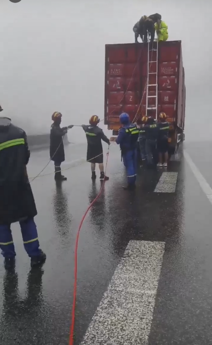 游国春:感谢大家关心,也谢谢救援队的救援!当时,我车上拉的是矿石,从贵州省开阳县拉过来的,有22吨重,打算拉到广东省江门市。昨晚,我在清水江一带休息,今早6点半发车启程,车子在7点20分左右来到排洞服务区,之后继续往前开没多久,就到了大家看到的垮塌地点(猴子河特大桥)。