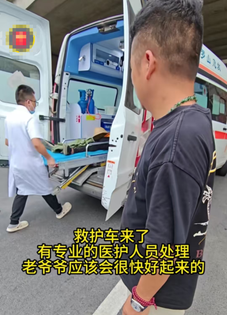 从现场视频看,卢先生和一路人一起将老人搀扶到路边休息,并第一时间报警;一名过路的货车司机,还送上冰镇的矿泉水给老人降温;随后当地警方赶到现场,给老人喂水、扇风降温,直到救护车将老人送往医院。卢先生坦言:“人常说羊群效应,有人做好事,会影响到身边的人跟着你做。”