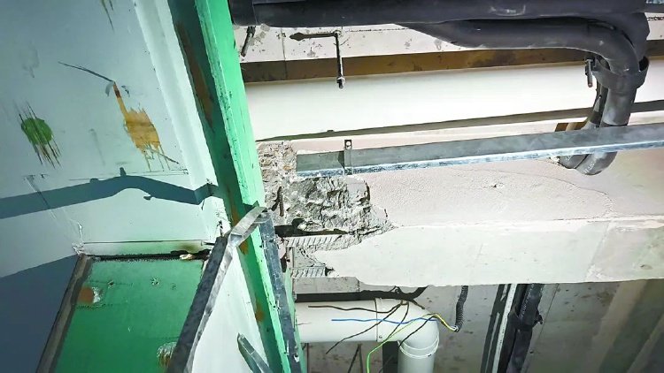 上图、下图均为相关业主房屋中客厅与厨房交接处的次梁遭受不同程度的损伤