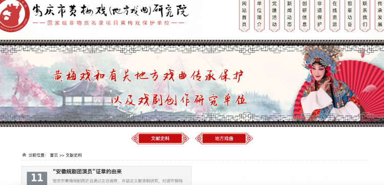 安庆市黄梅戏(地方戏曲)研究院官网发文《“安徽皖剧团演员”证章的由来》,讲述“黄梅戏”三个字的来历。官网截图