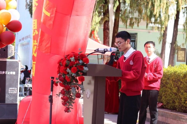 凌崇恩作为学生代表在高三的百日誓师大会上发言