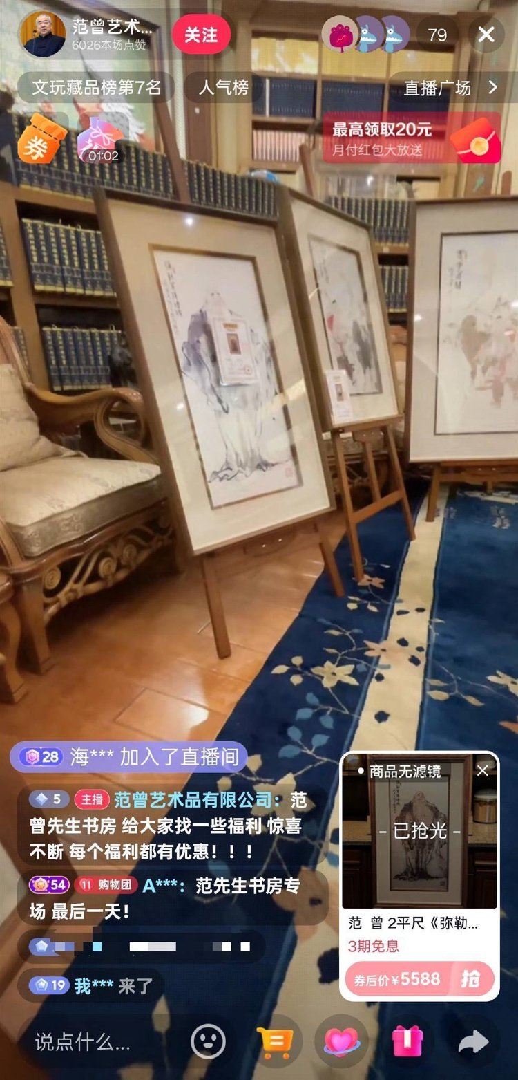 原标题:范曾女儿称父亲被带走失联后,范曾持股公司账号仍在直播卖字画,回复网友称“失联系谣言”