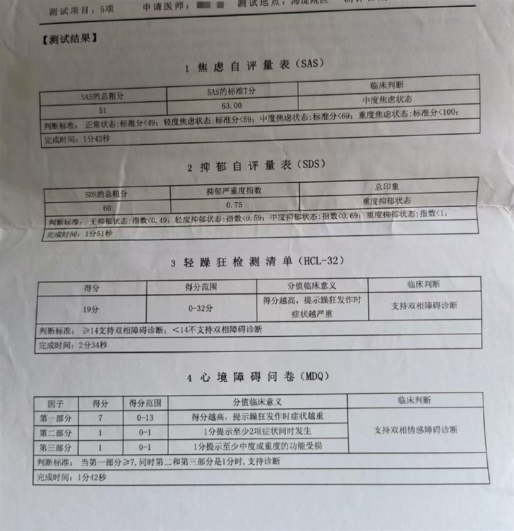 赵女士的心理测评报告。(受访者供图)