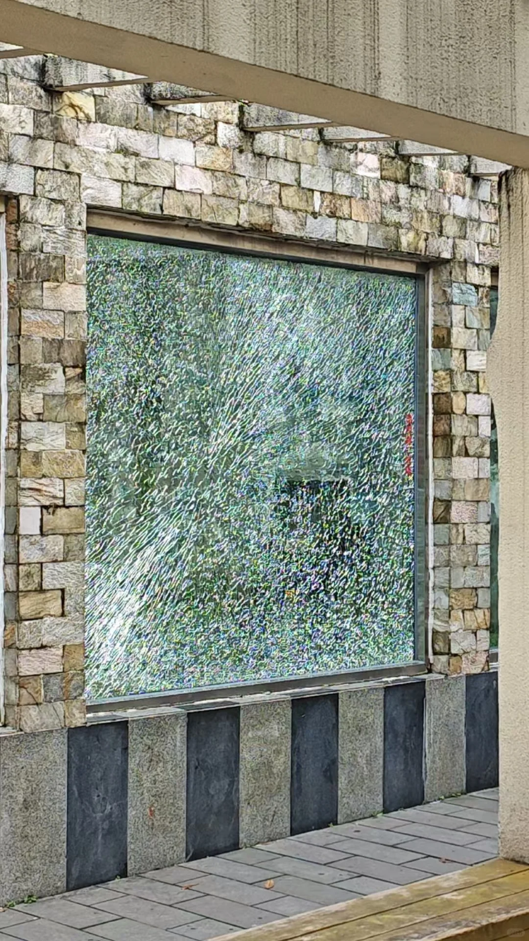 被砸碎的山魈馆舍玻璃。受访者图