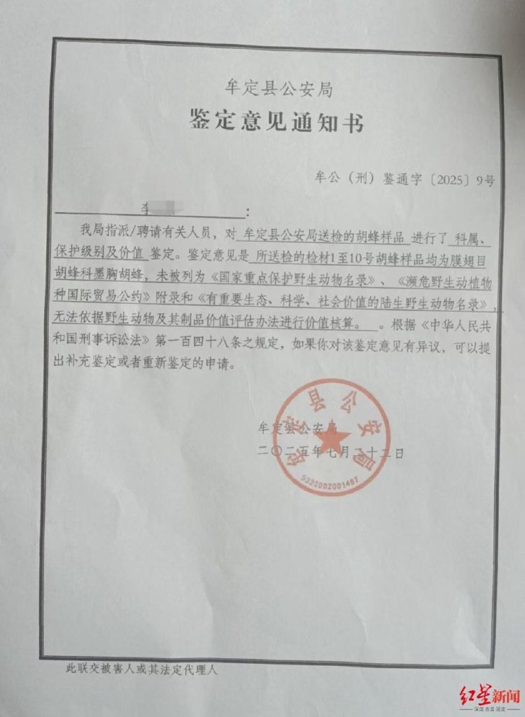 9月1日,他前往牟定县多个部门咨询却得到不同答复,“农业农村局称胡蜂属野生动物归林草局管。林草局则称胡蜂不是野生动物,圈养后属家养范畴归农业农村局管。”