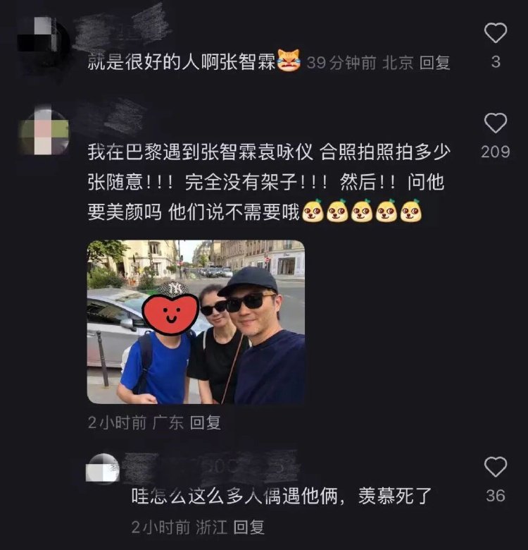 有网友说:“自己也曾偶遇过张智霖,随意合照完全没有架子。”
