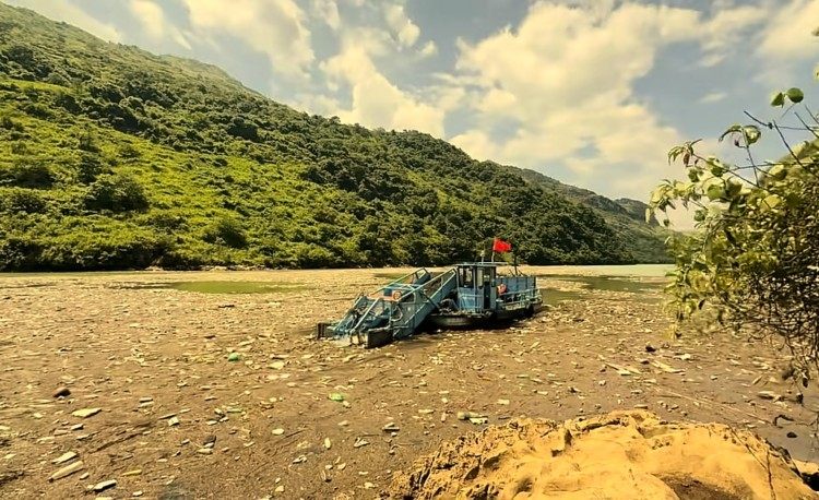 官方出动垃圾清理船帮助清理江面垃圾。图片来源/视频截图