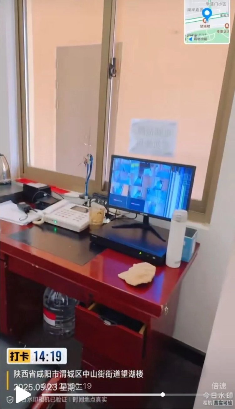 9月23日李女士到望湖楼,保安室内未见工作人员。图/ 受访者提供